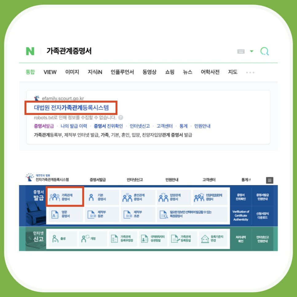 우선 포털사이트에 가족관계증명서를 검색하여