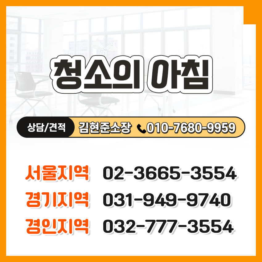 오늘은 청소의 아침 서비스 중 하나인 사무실정기청소 서비스의 전,후를 보여드리도록 하겠습니다.