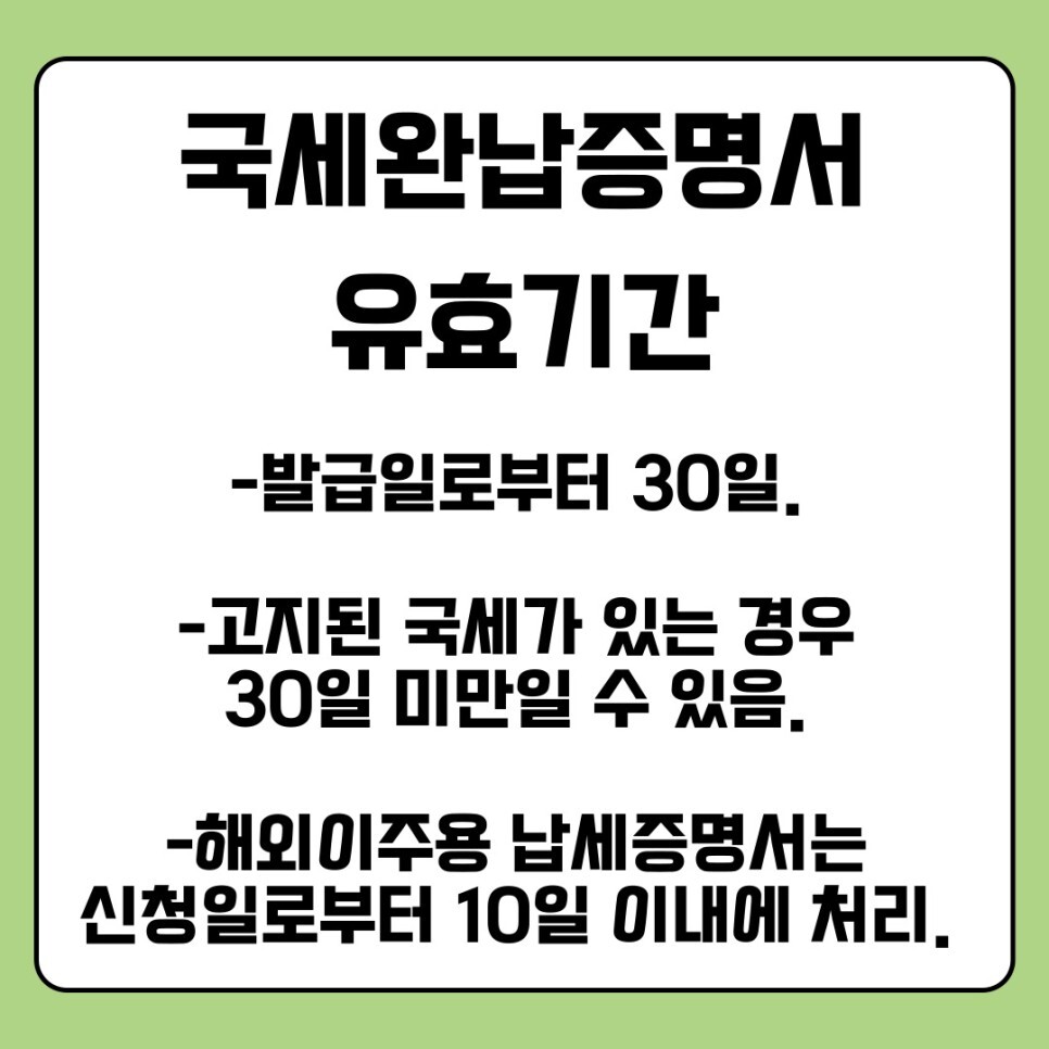 국세완납증명서의 유효기간은 발급일자로부터 30일이며