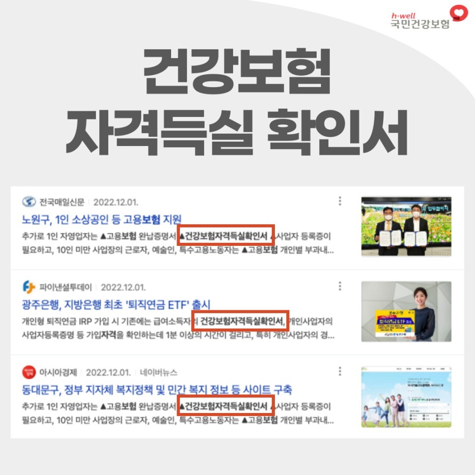 말 그대로 건강보험의 자격 확인과 수급대상 여부를 확인할 수 있는 서류로