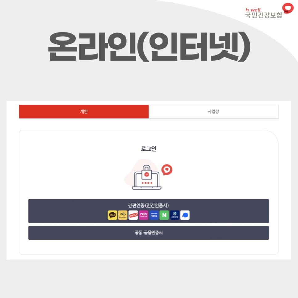 국민건강보험 홈페이지도 네이버나 카카오톡, 토스 등 간편인증으로 로그인을 할 수 있으며 공동/금융인증서 활용도 가능합니다.