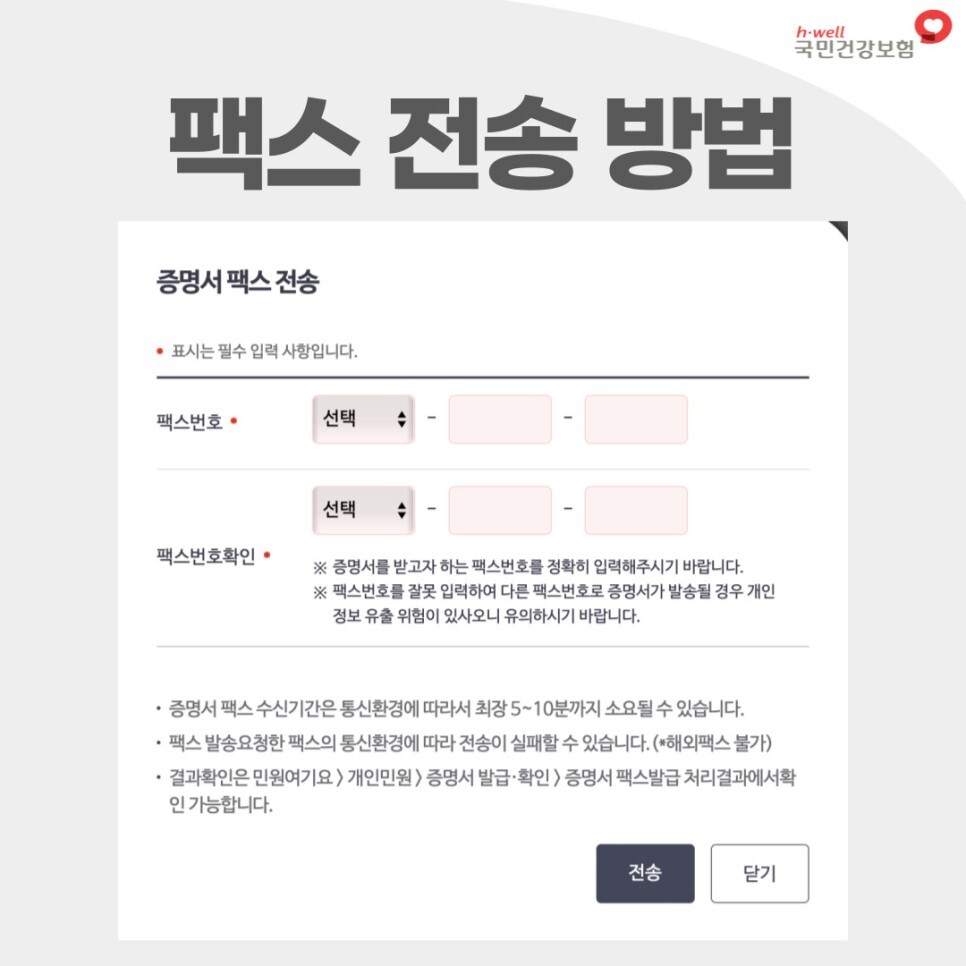 전송할 기관의 팩스번호를 두 번 정확하게 입력한 뒤