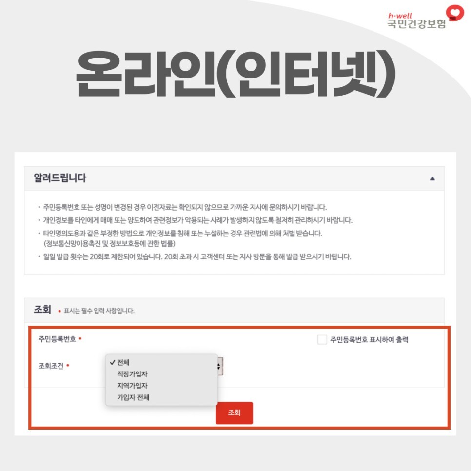 또한 국민건강보험 고객센터(1577-1000)에 전화하여
