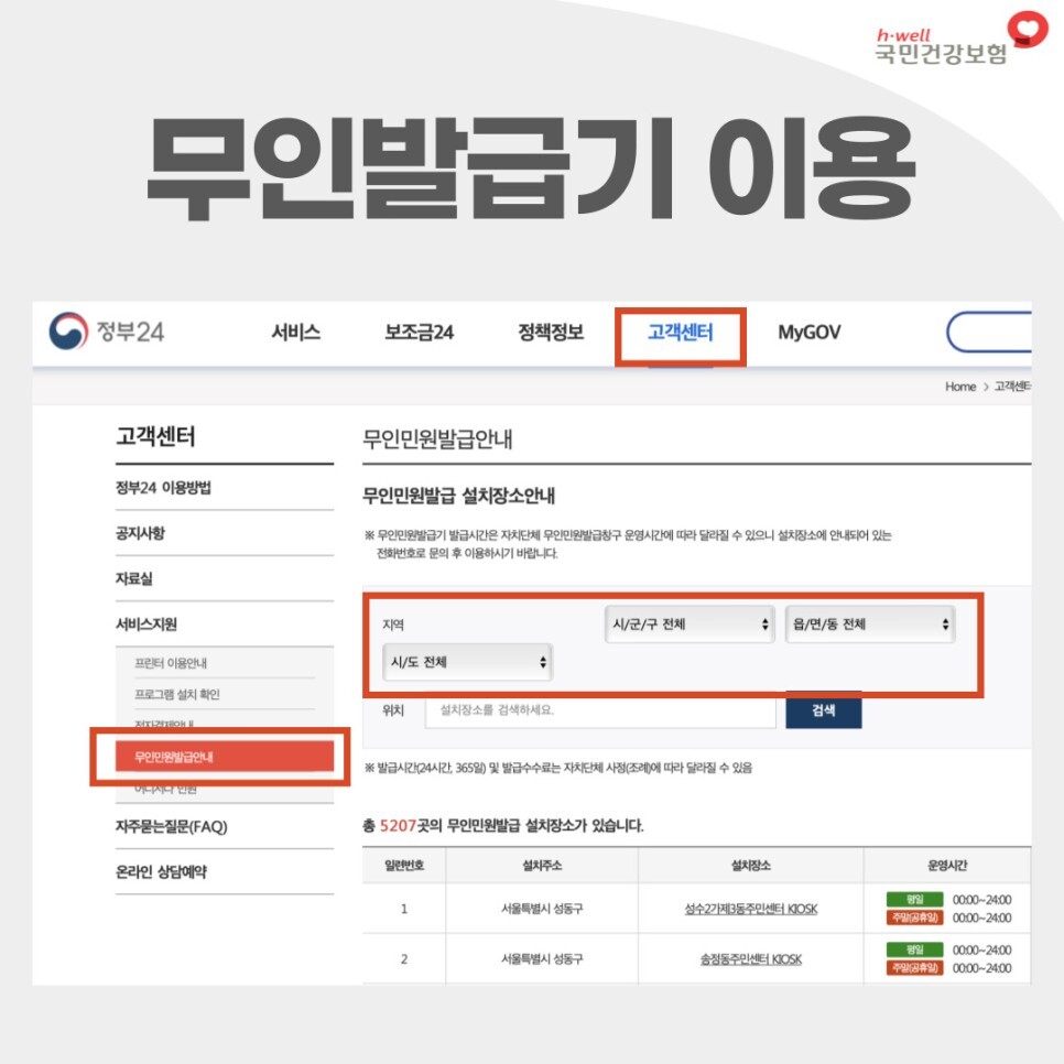 무인발급기 위치부터 운영시간 등 해당 내용을 확인하시면 되는데요.