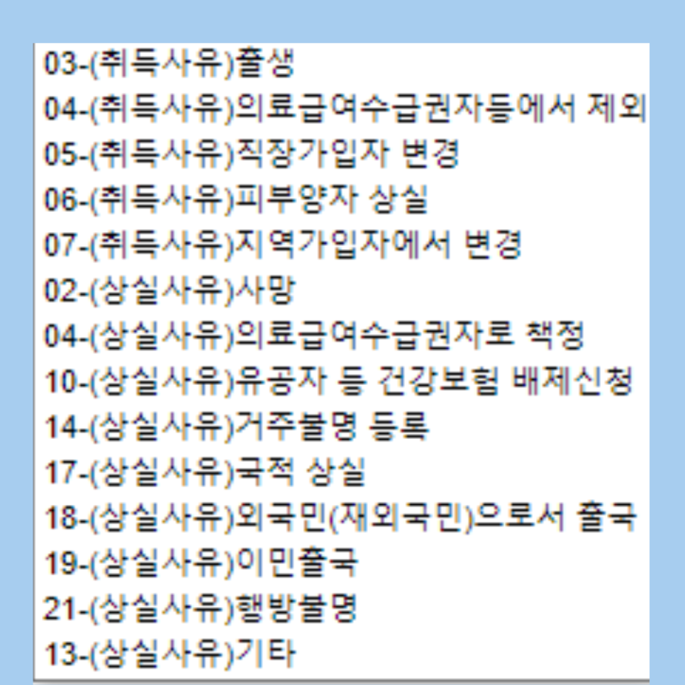 피부양자 자격 취득 연월일과 취득 부호를 입력해주세요.