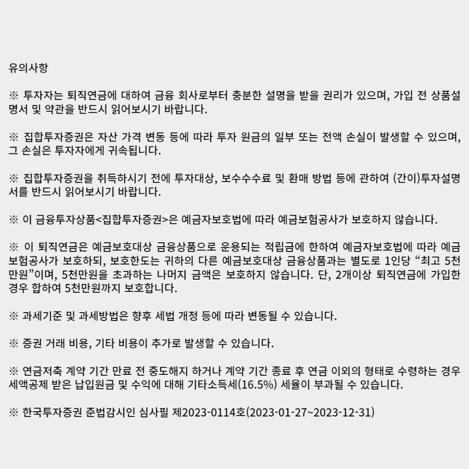 이제 더 이상 사적 연금 관리의 필요성에 대해서는 더 강조할 필요가 없을 정도라는 생각이 듭니다. 아직 관리를 안 하고 계신 분들이 계시다면 이벤트 기간 내에 가입하시는 것에 대해 고려해보시면 좋겠습니다.