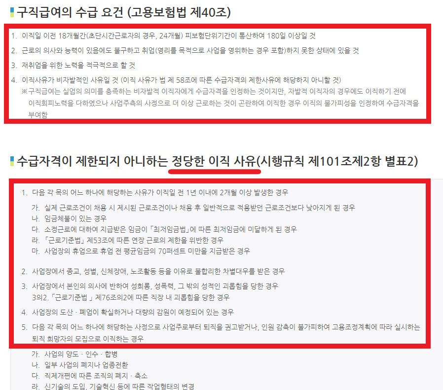 또한 수급자격이 제한되지 않는 정당한 이직 사유들이 나와있습니다.