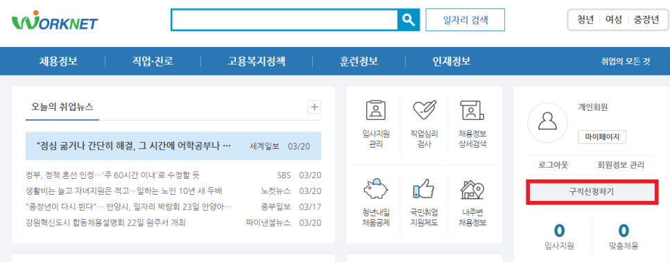 로그인을 하셨으면 구직신청하기 버튼을 클릭해주시면 됩니다.