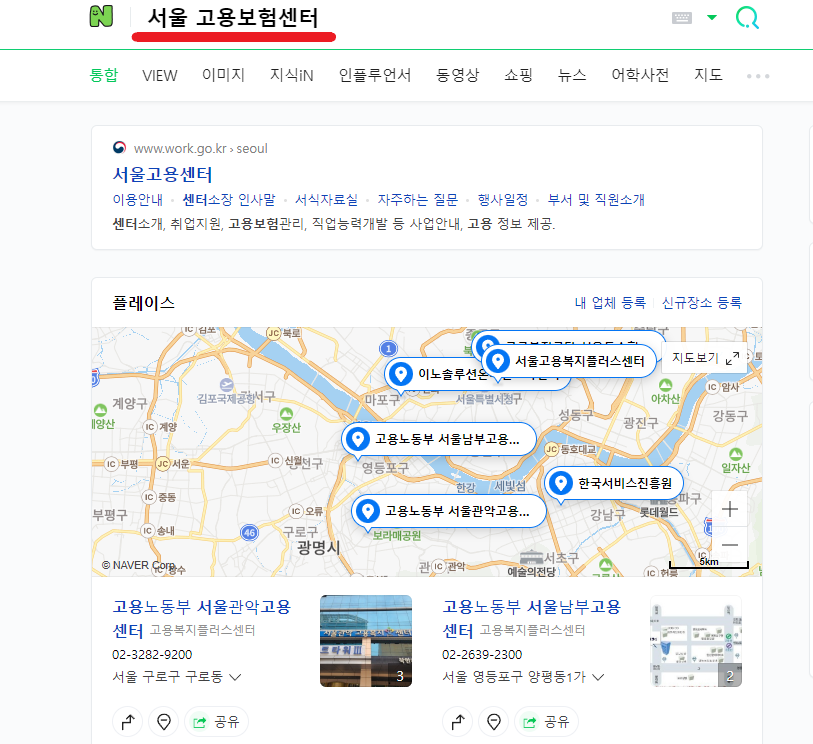 고용보험 센터는 네이버에서 특정 지역 + 고용보험센터를 검색하면 찾을 수 있습니다.