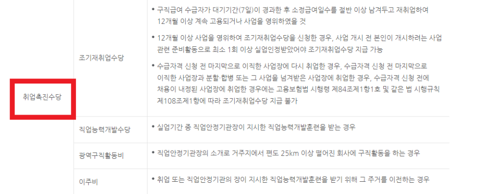 취업촉진수당의 경우에는 소정급여일수를 절반 이상 남겨두고 재취업 + 12개월 이상 유지시 받을 수 있는 수당입니다.