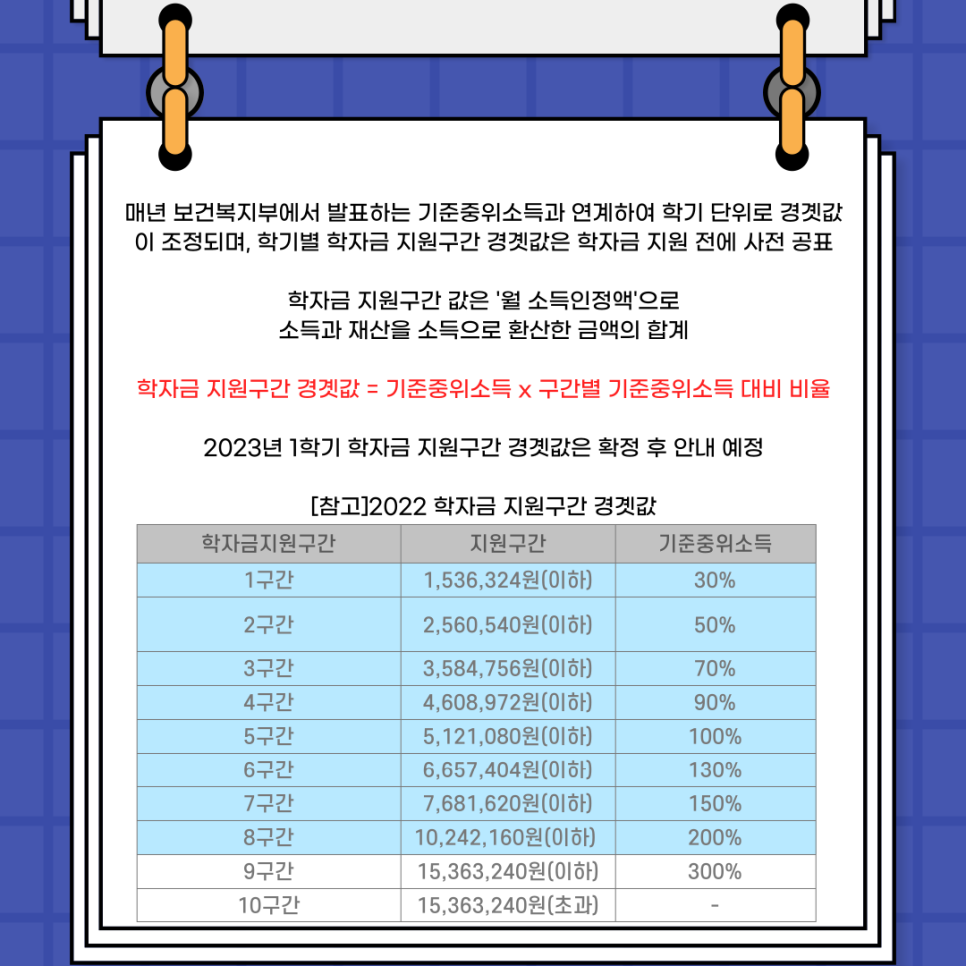 2022년 학자금 지원구간 경곗값을 참고해주시기 바랍니다.
