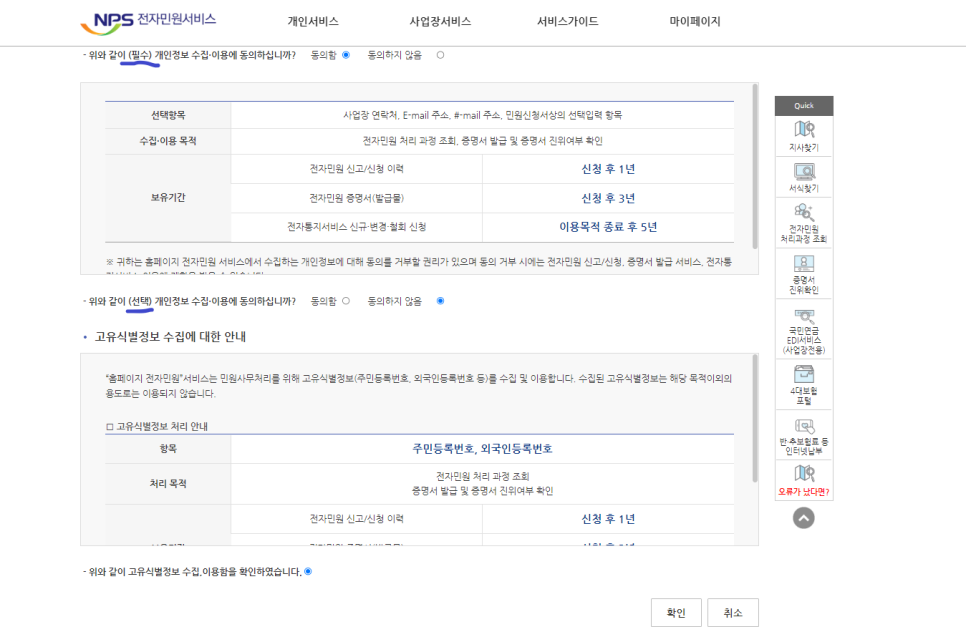 곧 바로 동의사항에 대한 안내문이 나옵니다.