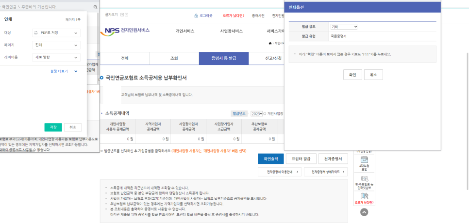 제가 화면을 두 개 띄워뒀습니다만, 좌측은 화면 출력시 나오는 PDF용 파일이며, 우측은 프린트 발급용입니다.