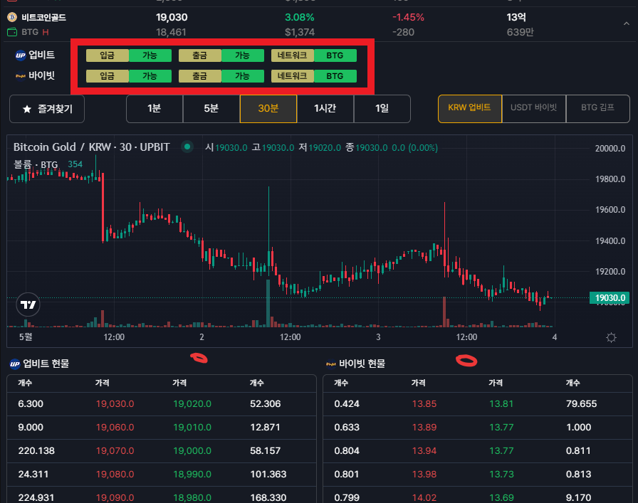 이번에는 다행히 두 거래소에서 모두 입출금이 가능합니다.