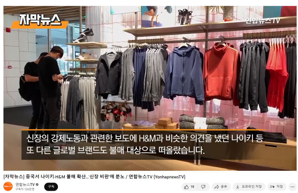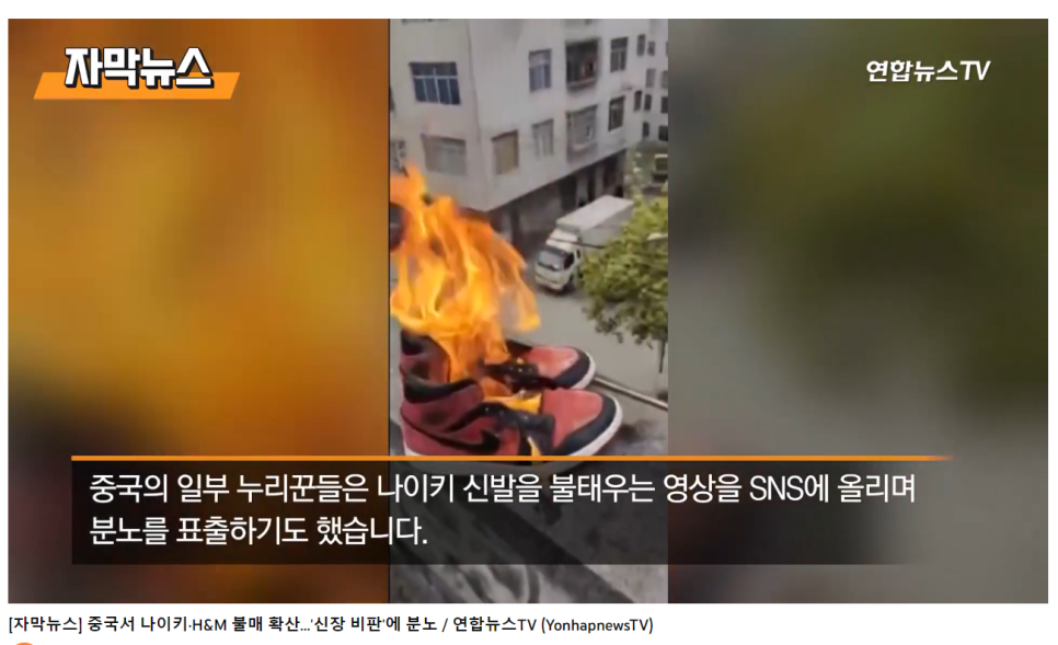 그래서 가장 먼저 H&M이 타격을 입고, H&M의 불매운동 인기가 식어버리자 다음 타겟은 나이키가 되어버렸습니다.