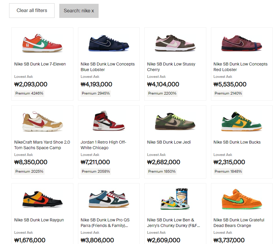 이런 식으로 비싼 나이키는 무슨 하나에 800만원이 넘어가기도 합니다.