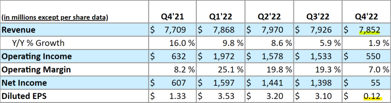 반면 분기 매출은 78억5200만달러로 시장 전망치였던 78억4800만달러로 부합하면서 전년 동기 보다 1.85% 성장세를 보였습니다.