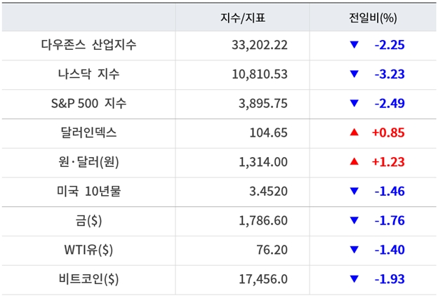 뉴욕증시, ‘R의 공포’ 속 경제지표 부진에 일제 급락 ‘넷플릭스 8.63%↓’…유가·비트코인 하락 [출근전 꼭 글로벌브리핑]