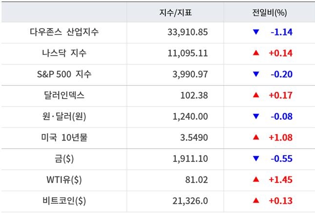 반도체주가 상승했다. 엔비디아 4.75%, TSMC 2.52%, AMD 0.83% 상승했다. 빅테크주는 혼조세를 보였다. 애플과 마이크로소프트는 각각0.88%, 0.47% 상승했다. 아마존은 2.11%, 넷플릭스 1.98%, 메타 1.18%, 알파벳 0.9% 하락했다.