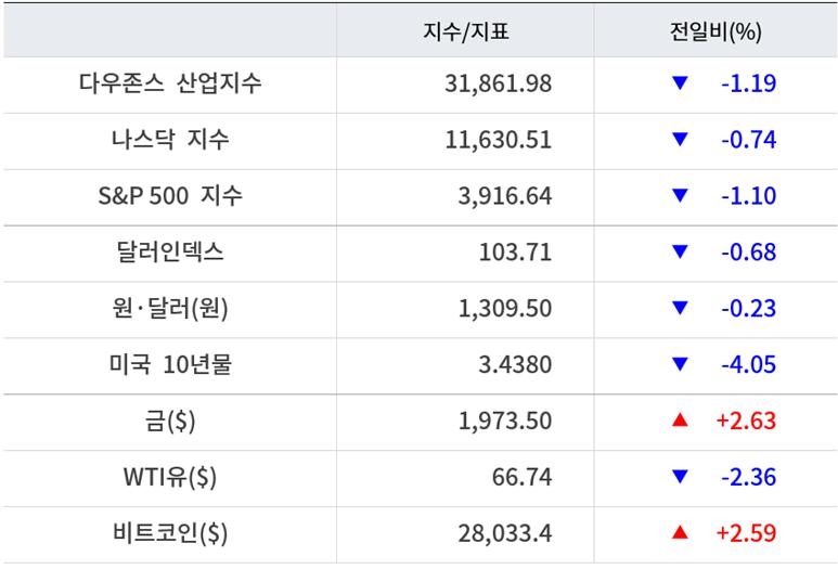 국제 유가는 크게 하락했다. 뉴욕상업거래소에서 4월분 인도 서부텍사스산원유(WTI) 가격은 2.36% 급락한 배럴당 66.74달러에 거래를 마쳤다. 2021년 12월 3일 이후 가장 낮다. WTI 가격은 금융 시스템 리스크 확산에 따른 투심 악화에 이번주에만 무려 12.96% 내렸다.