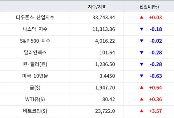 한편 이날 캐나다 중앙은행(BOC)는 통화정책 회의를 열고 기준금리를 4.25%에서 4.50%로 0.25%p 인상했다. BOC는 향후 금리를 현재 수준으로 유지할 수 있다고 밝히며 주요국 중앙은행 가운데 최초로 동결 가능성을 시사했다. 이에 약세를 보이던 뉴욕증시가 낙폭을 줄였다.
