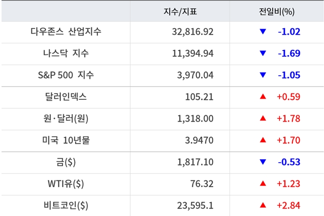 미국 10년물 채권 금리는 3.97%대까지 오르며 다시 4%대에 육박했다. 2년물 채권 금리도 4.8%대까지 올랐다.