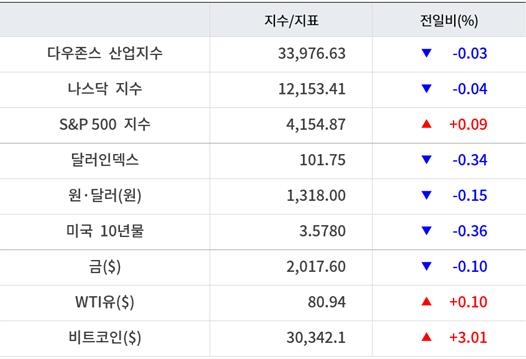 기술주가 엇갈린 모습을 보였다. 애플 0.75% 넷플릭스 0.29% 상승한 반면 알파벳 1.39%, 메타 0.44%, 마이크로소프트 0.15% 하락했다.