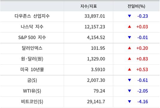 전날 장 마감 후 실적을 발표한 넷플릭스는 1분기 신규 가입자와 매출이 예상치를 밑돌았다는 소식에 주가는 3% 이상 하락했다. 넷플릭스는 계정 공유 유료화 조치는 2분기로 미루기로 했다.