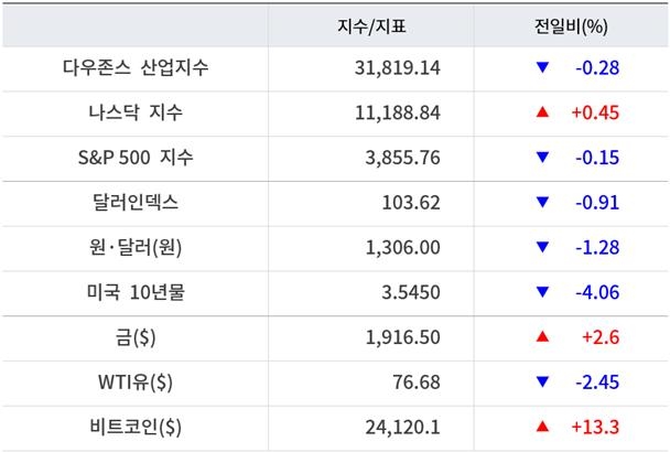 기술주는 상승했다. 애플이 1.33% 오른 150.47달러에 장을 마감했다. 알파벳 0.53%, 마이크로소프트 2.14%, 넷플릭스 0.26%, 메타 0.77% 상승했다.