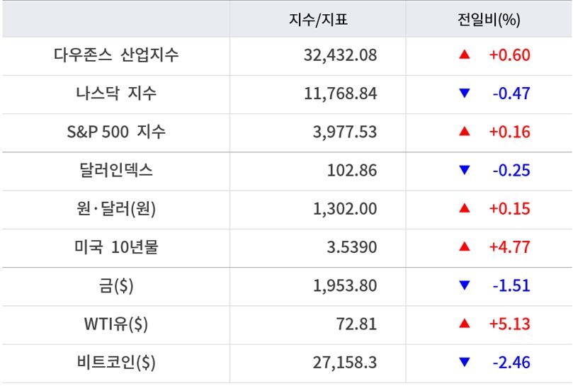 이날 국채금리는 상승했다. 미국 10년물 국채금리는 3.54%선으로 상승했다. 통화정책에 민감한 2년물 금리는 4%선을 되찾았다.