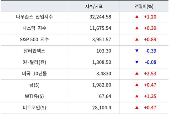금융권에 대한 우려가 다소 줄어들면서 위기 상황에서 안전자산 역할을 했던 대형 기술주들에서는 차익 매물이 나와 나스닥지수의 상승 폭은 상대적으로 작았다. 마이크로소프트가 2.58%, 아마존 1.25%, 알파벳 0.39% 하락했다. 아마존은 9천명 이상을 추가 감원하기로 했다는 소식도 나왔다. 애플은 1.55%, 메타 1.12%, 넷플릭스 0.54% 상승 마감했다.