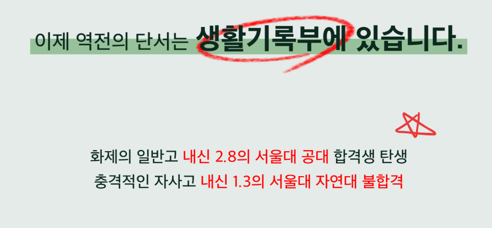 너무 고민이 되었는데 대치동 입시컨설팅 입시의기세에서는 생활기록부가 부실한 일반고 학생도, 내신이 낮아 힘들어 하는 특목고, 자사고 학생들도 좋은 성과를 냈다고 합니다.