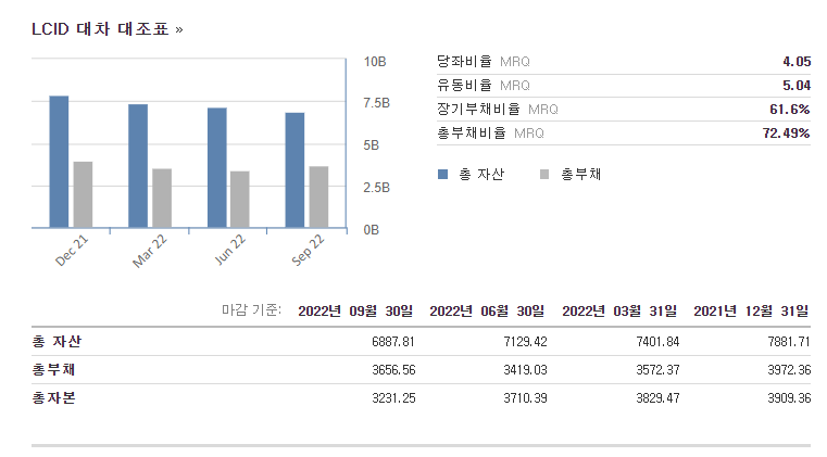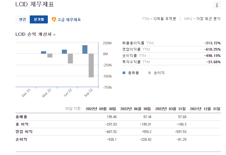 루시드의 PER, PBR등 투자지표는 현재 적자기 때문에 의미가 없습니다.
