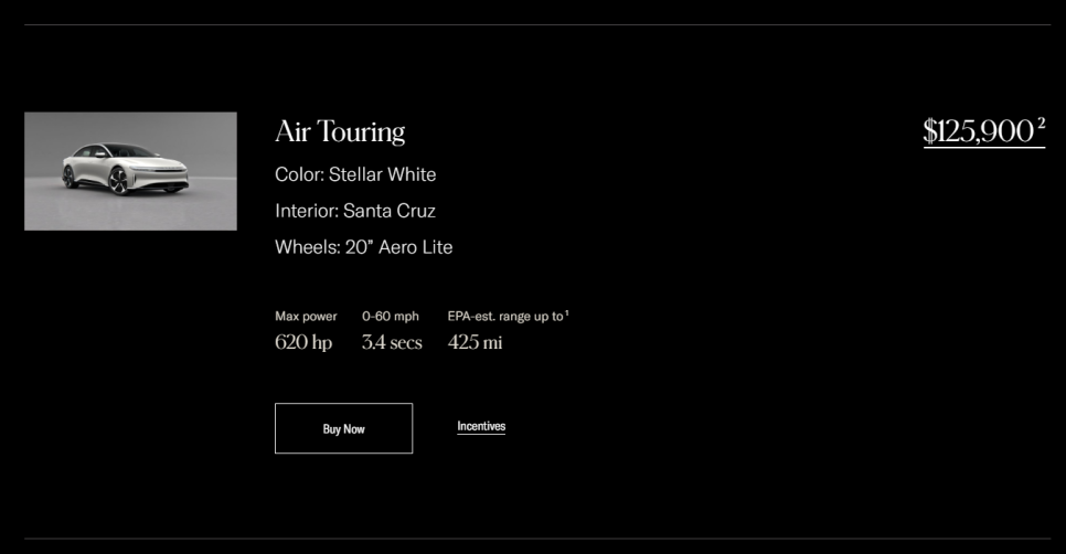 루시드의 가격은 럭셔리세단답게 (?) 비싼편인데요.