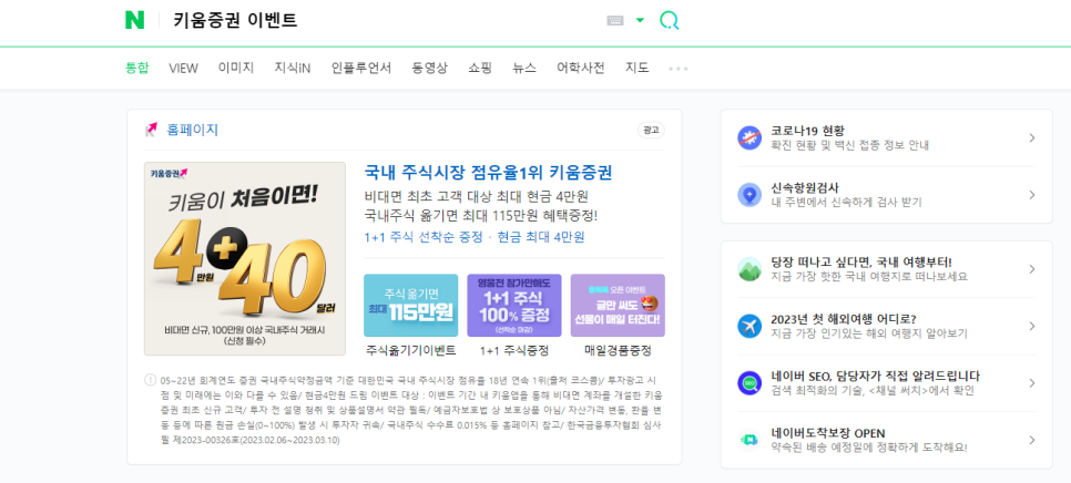 이런 식으로 네이버에 XX증권 이벤트를 검색하시고, 받아갈 수 있는 혜택을 다 알아보시고 계좌를 개설해주세요.