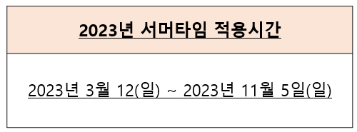 2023년 서머타임 적용기간은 아래와 같습니다.