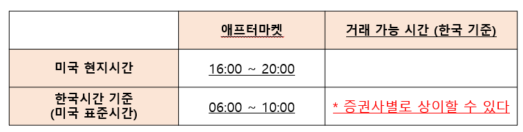 미국 현지 시장에서 정규장 종료 후 시간외거래가 가능한 시장입니다.