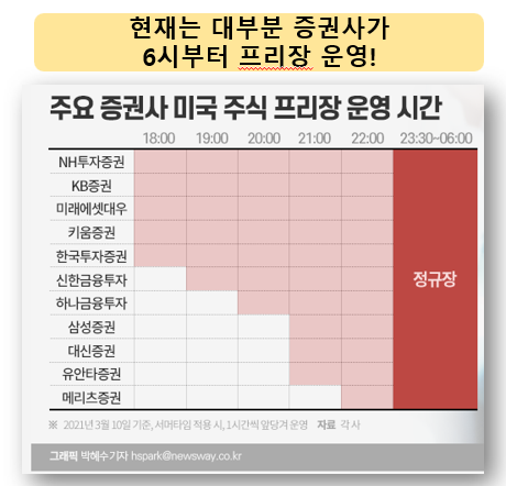그러나 현재는 대부분 증권사들이 프리마켓 시작시간을 6시부터 적용하고 있습니다.