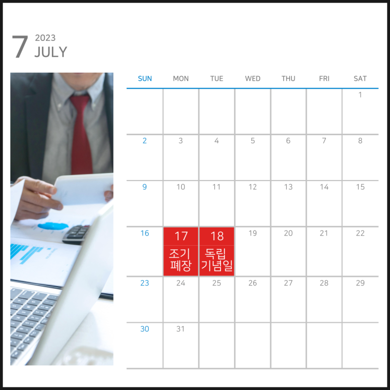 7월 미국주식 휴장일은 잘 알고 계셔야 됩니다. 7.18일날 독립기념일날 휴장입니다. 하지만 전 날인 월요일엔 현지 시간을 기준으로 조기폐장(우리나라 시간 새벽 03:00)을 하기 때문에 이점 꼭 유의하시길 바랍니다.