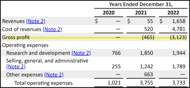 결국 위에 재무상태를 본다면 2023년에도 리비안의 매출총이익은 마이너스를 유지할 것으로 예상할 수 밖에 없습니다.