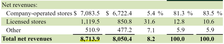 동일점포 매출성장은 2018 회계연도부터 2022 회계연도까지 평균 약 4%로, 2020 회계연도에는 펜데믹 기간으로 인한 14%의 감소를 포함한다.