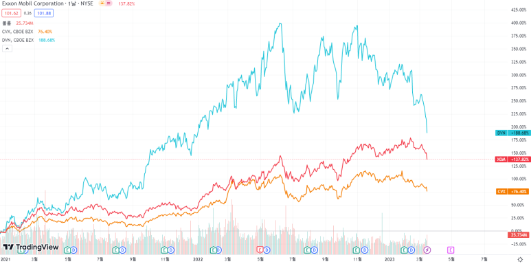 미국 정유주들의 주가흐름은 비슷하기 때문에 엑손모빌 차트를 한번 보도록 하겠습니다.