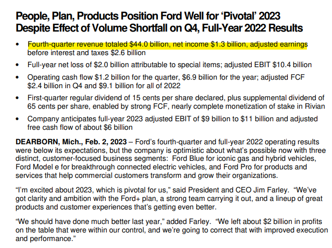 포드에서는 이러한 결과를 반도체 공급 부족과 공급망 비용이 많이 나갔기 때문이라고 발표하였습니다.