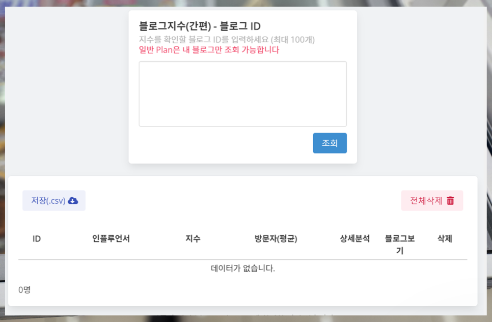 무료인 일반 Plan에서는 내 블로그만 조회할 수 있어요.