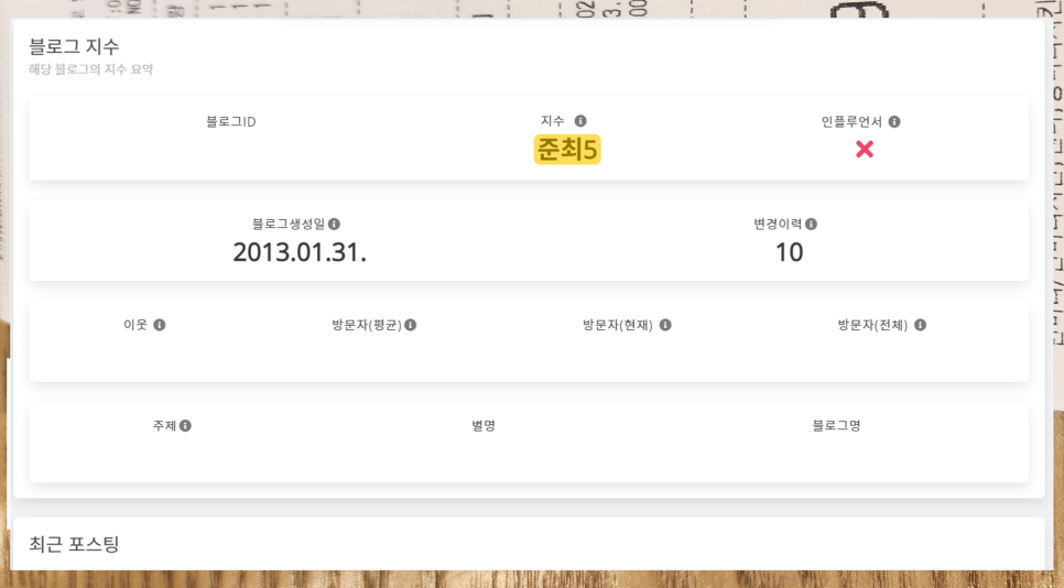 블로그 지수는 위와 같이 상세한 정보를 알려주는데요,