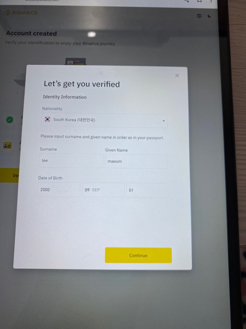 휴대폰 번호를 할까 생각도 했었는데요, 뭔가 해외 거래소에 저의 번호를 주는 게 조금 찝찝하더라구요...?