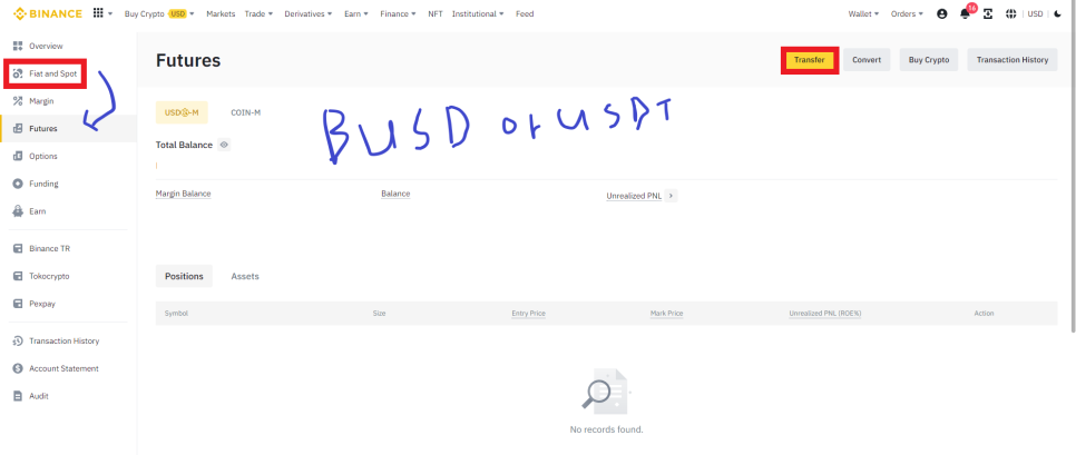 바이낸스 선물거래를 하기 위해서는 Spot(현물) Wallet에서 Futures(선물) 계좌로 자금을 Transfer(이동)해주셔야 합니다.