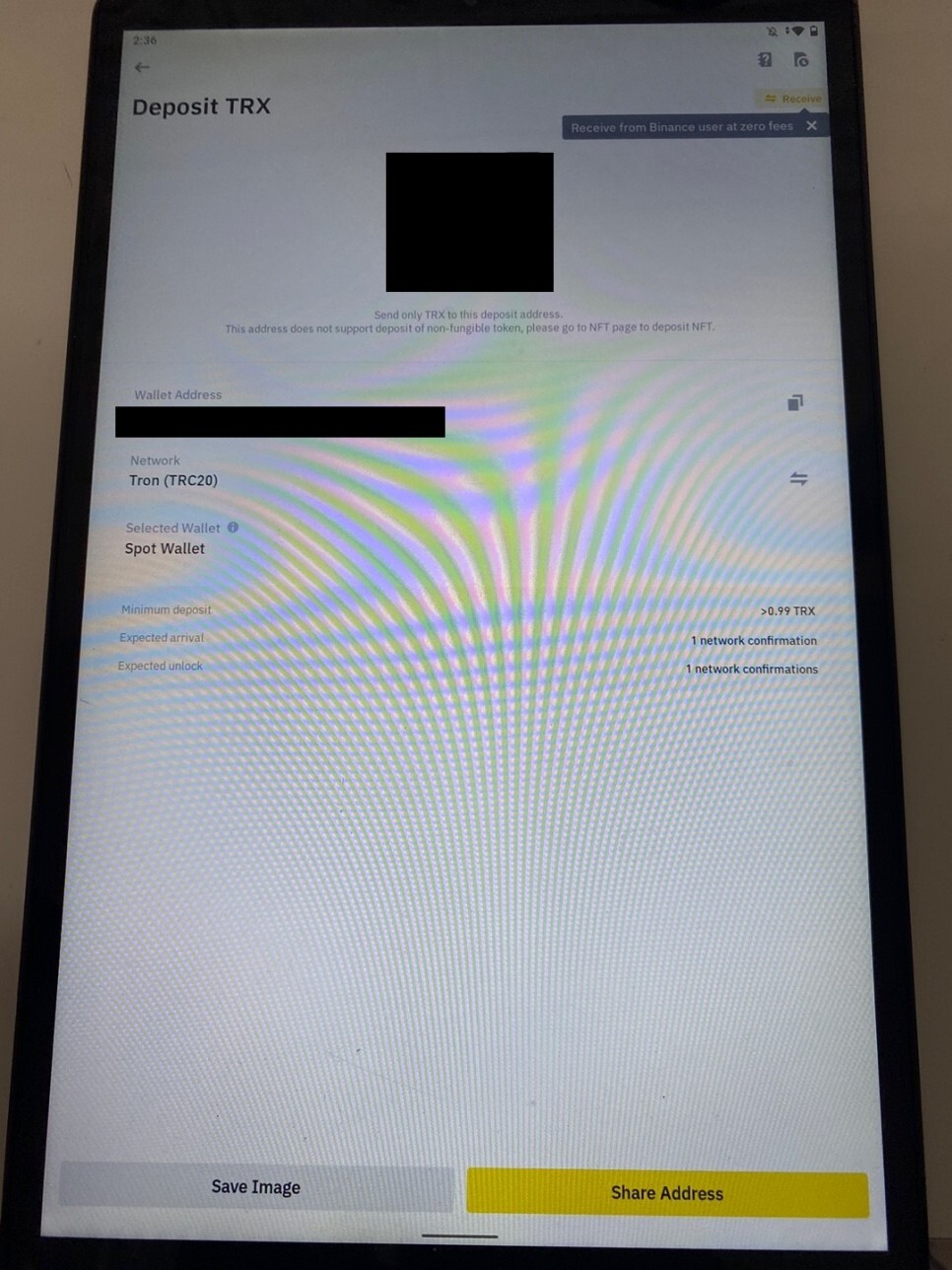 지갑 주소와 QR코드의 경우 개인정보이다보니 부득이하게 가렸습니다.