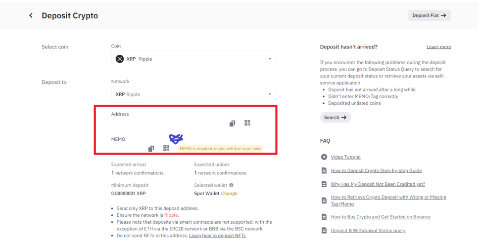 바이낸스측에서도 메모가 기입되지 않으면 코인이 소실될 수 있다고 하죠.