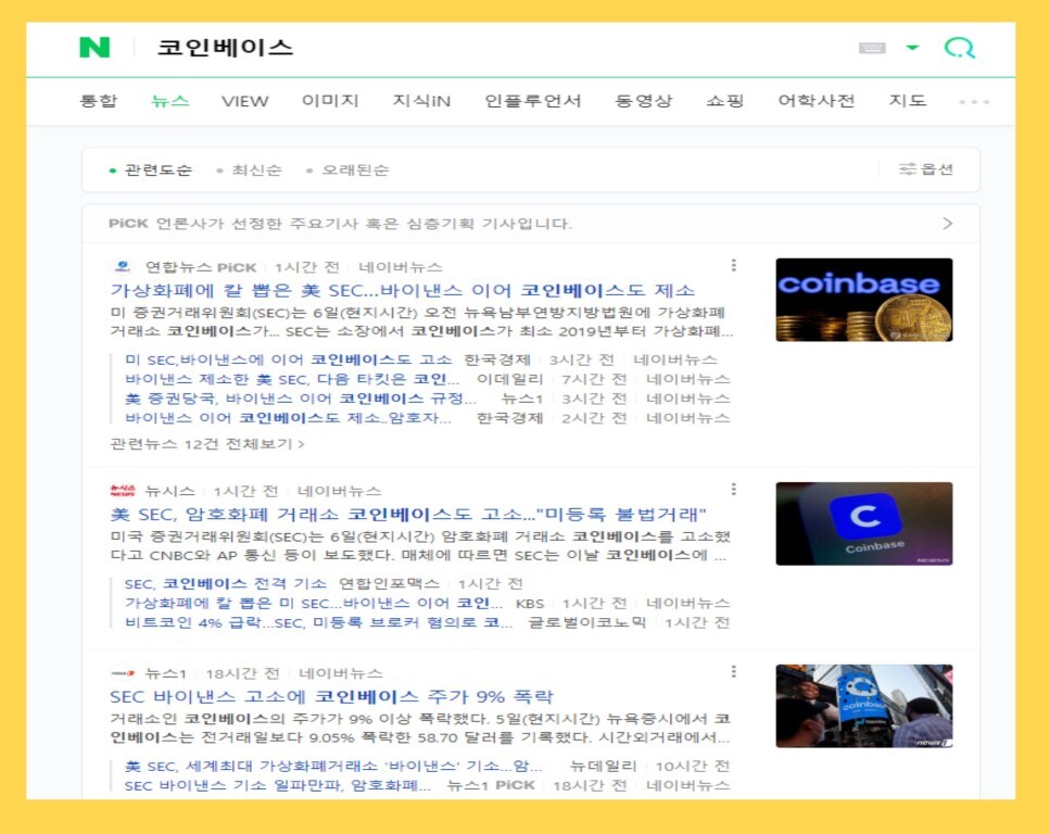 며칠 전 바이낸스에 이어 코인베이스도 SEC에 의해 고소당했다고 합니다.